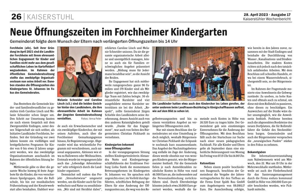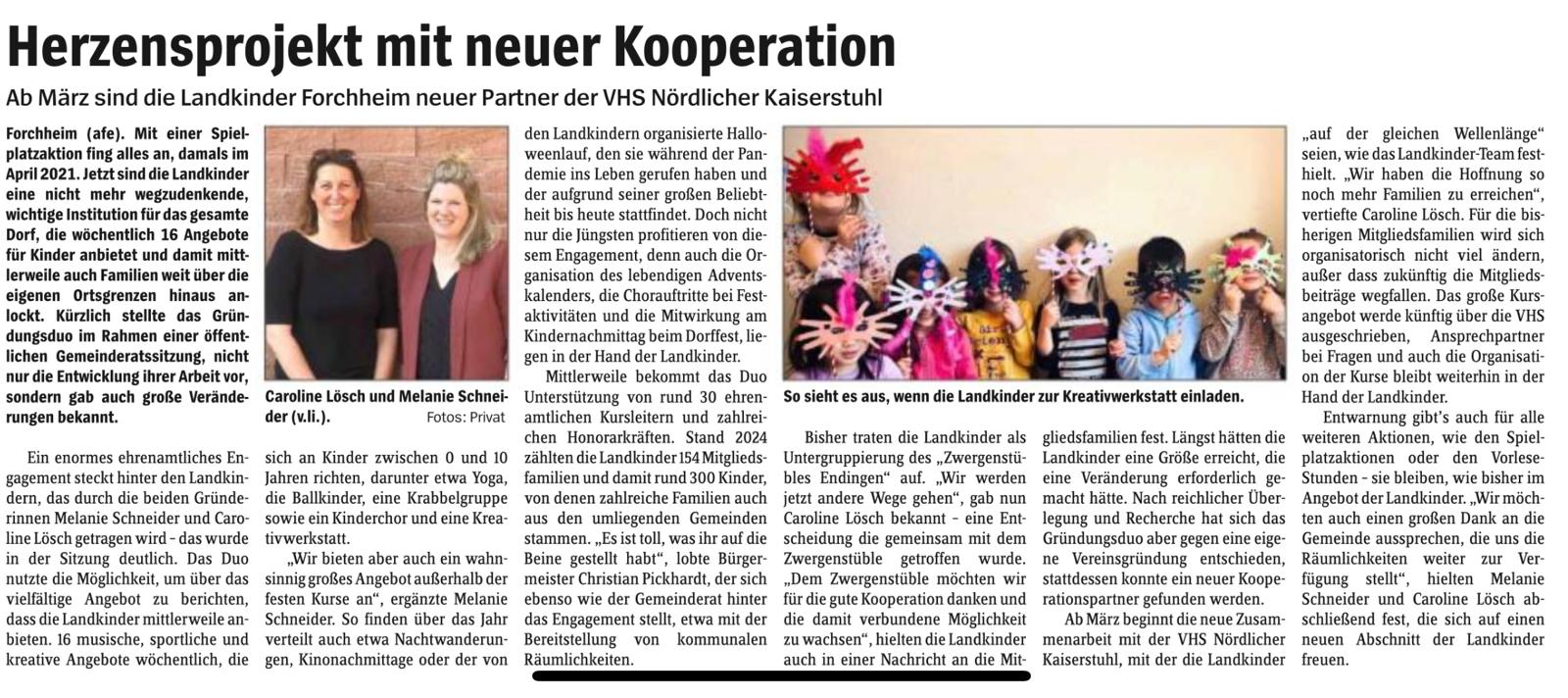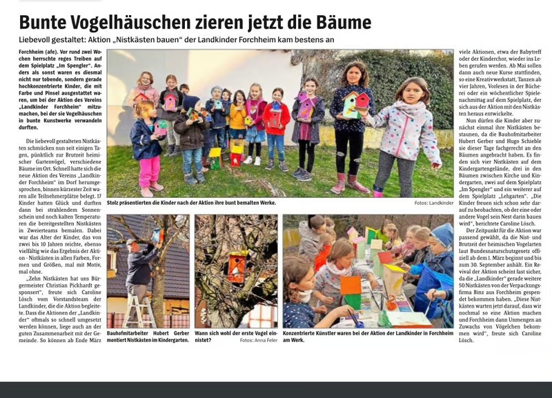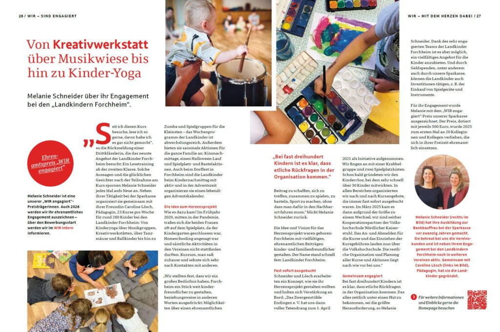 Die Arbeit der Landkinder Forchheim findet auch über das Dorf hinaus Beachtung. In regionalen Medien wird über unsere Kurse, Aktionen und unser Engagement für Kinder und Familien berichtet.